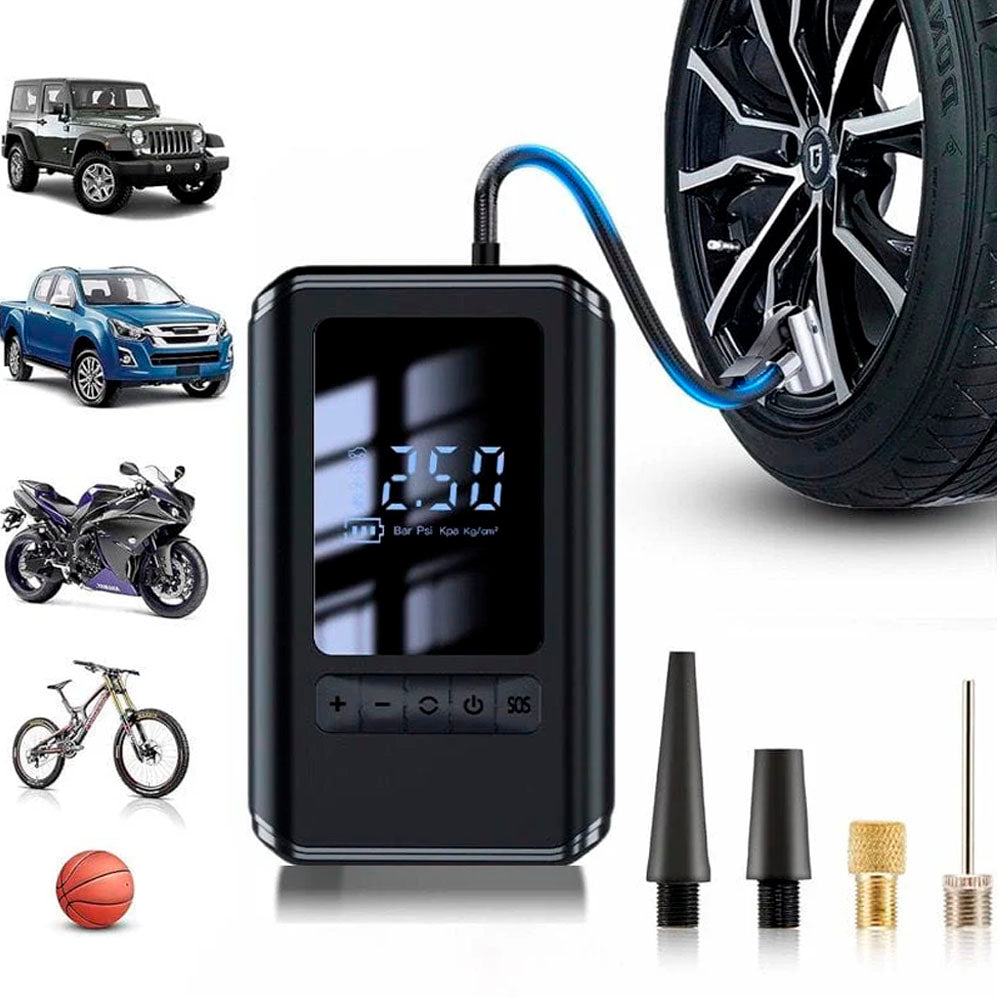 • Multi-funcional: Esta bomba no es solo para inflar neumáticos, también admite carga inalámbrica, lo que la convierte en una herramienta versátil para las necesidades de mantenimiento de su motocicleta.