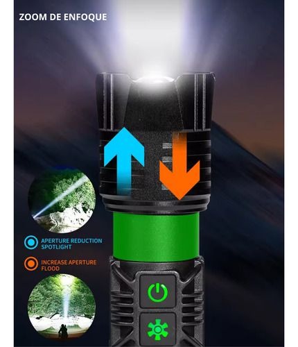 La última linterna LED de largo alcance utiliza una mecha blanca como punto de luz y tiene un lumen máximo de 100.000 lúmenes. Es la linterna con la distancia de iluminación más larga del mercado. Hay 5 modos, adecuados para varios lugares. La linterna utiliza baterías 18650 o 26650 y se puede utilizar durante 6-15 horas con una sola carga.