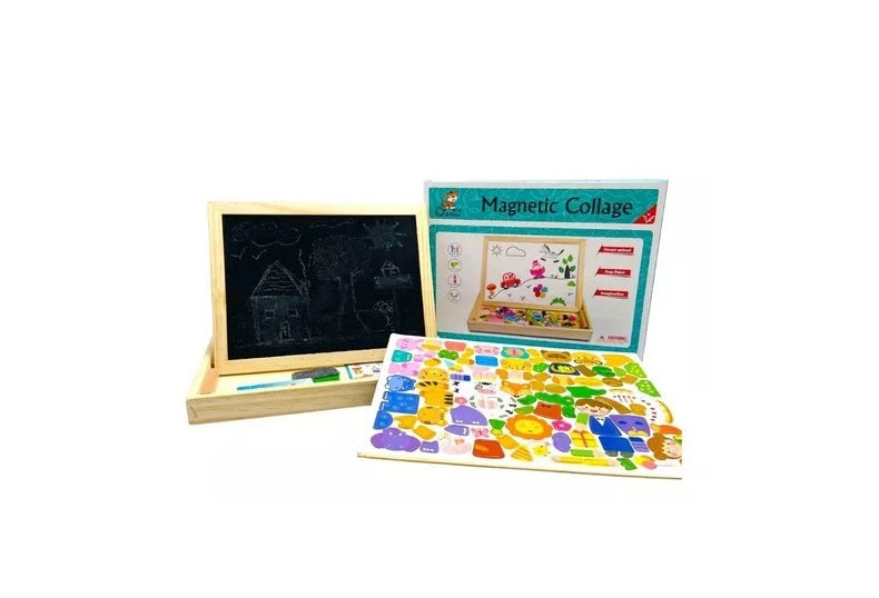 Este pizarrón magnético mágico es ideal para los más pequeños de la casa. Está hecho de madera y sus medidas son 27 cm de largo, 21 cm de alto y 3 cm de ancho. Los materiales son seguros para niños y se sugiere su uso a partir de los 3 años en adelante.